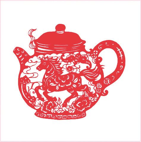 潮阳剪纸省级代表性传承人郑少燕的《马壶呈祥》,依然延续以往醒目的工夫茶壶“标识”,作品取“壶”与“福”的谐音,用套嵌式构图,利用茶壶的外轮廓作框,壶盖露出的缝飘出一缕茶香气袅袅上升,壶底的边缘饰以回纹。壶里祥云缭绕,一匹骏马鬃毛飘洒,长尾飞舞,尽显奔腾向上的豪迈气概;左前下方的一柄如意与右上方的蝙蝠互为对应,象征着幸福如意。画面上的茶壶、骏马、蝙蝠、如意、牡丹等,用传统的月牙、锯齿纹与曲、弧、菱形纹样等“阴剪”技法,将骏马巧妙地用“阳剪”祥云的纤细线条与之连接,形成密集与通透的完美映衬。