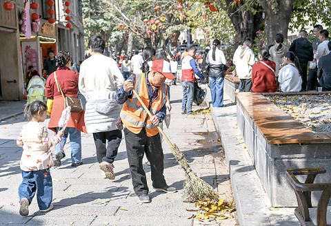 在古城游玩,不少游客都由衷感慨:古城比以往更加干净整洁了。这舒心整洁的环境,背后离不开环卫工人的默默坚守与辛勤付出。春节期间,古城游客激增,垃圾量比平时大幅增加,保洁压力明显加大。我市环卫部门提前部署、优化排班,增加人员力量与保洁频次,延长作业时间,全力确保垃圾日产日清、路面干净整洁。环卫工人们清晨上岗、深夜收工,穿梭在街巷、广场和景点周边,用辛勤汗水守护着古城的洁净“容颜”。