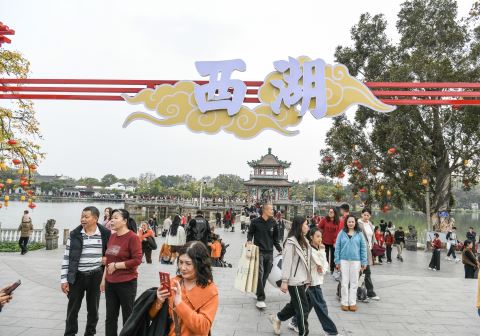 市区西湖公园游客熙熙攘攘。郑楚藩 摄