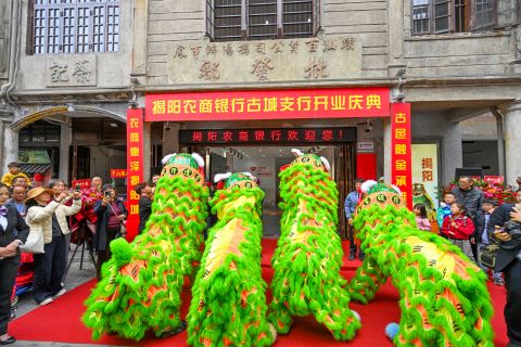 揭阳农商银行古城支行开业仪式瑞狮起舞。