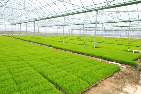 智能化育秧大棚内嫩绿的秧苗长势喜人。通讯员 摄
