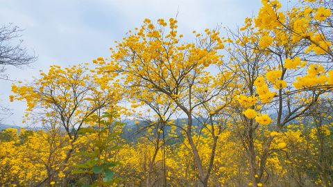 高田村百亩黄花风铃木盛放。通讯员 摄