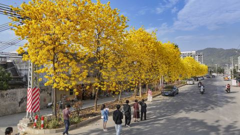 春光正好,花开正盛。每年初春,揭东区埔田镇车田村的黄花风铃木枝头繁花似锦,在暖阳与微风中摇曳生姿,将这条人来人往、车水马龙的道路,晕染成充满希望与欢乐的春日长卷,引得村民与游客纷至沓来,共享并定格明媚春光。
