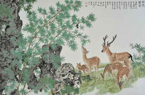竹亭鹿影