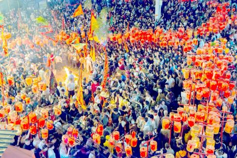 满村尽见红灯笼,万人空巷贺元宵。每年农历正月十四、十五,当元宵明月升起,这个平日里宁静的村落便会上演一场视觉盛宴。夜幕降临,大长陇村的男性手持写着“千子万孙”“五世同堂”吉祥字样的灯笼,从四面八方汇聚而来。刹那间,万家灯火汇成星河,数万盏灯笼在乡村中交织成一片流动的光海。