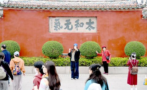 3月10日,游客在揭阳学宫参观游玩。