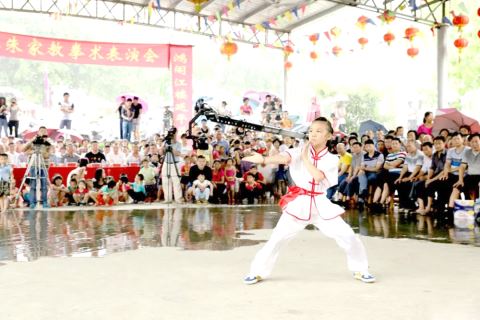 该武术队积极参加“乡乡乐”巡演等当地的群众文化活动,广受赞誉。近年来,在相关主管部门的大力支持下,他们以鸿江侯氏宗祠为培训基地,面向邻近乡村青少年开展免费公益培训,促进朱家教拳的传承发展;特别是将朱家教拳引入校园,创编了功夫扇校园武术课间操,用《男儿当自强》曲调为背景音乐,在当地鸿江小学推广。