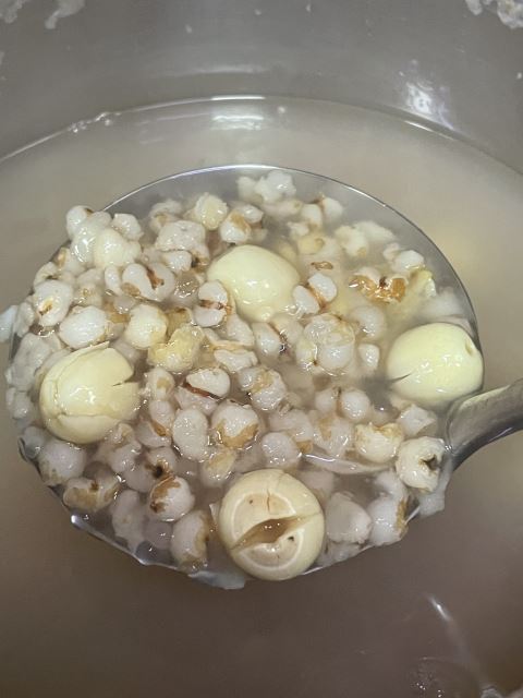 制作时,需要备好薏米、莲子、干百合、西米、枸杞、冰糖,把控好食材处理与火候,便能熬出地道的薏米莲子甜汤。食材预处理是口感基础,薏米洗净后放入无油的锅中用小火炒至微黄,既能降低寒性,又能激发谷物香味;莲子提前去芯,用清水泡半个小时,避免微苦影响口感,也能让后续炖煮更易软糯。