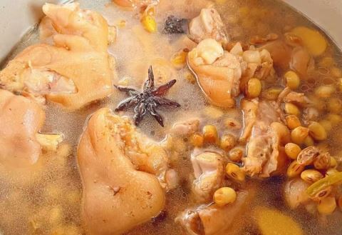 猪蹄富含胶原蛋白与多种矿物质,营养丰富;搭配含优质植物蛋白和膳食纤维的黄豆同煮,猪蹄咸香软糯、黄豆绵密入味,是一道兼顾营养与口感的家常菜。