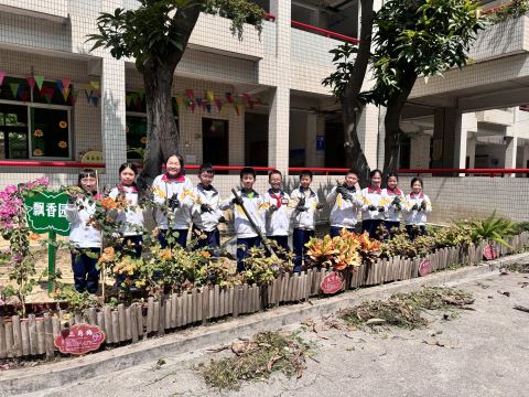 宣誓结束后,各护绿小队在校园飘香园、绿意角开展实践活动。队员们戴好劳动手套,分工协作、有序行动:有的俯身拔除杂草,细心清理每一处角落;有的精心修剪枯枝残叶,呵护绿植生长;有的认真培土、浇水,为新栽花草幼苗悉心照料。阳光下,一张张认真的脸庞、一个个忙碌的身影,与满园新绿相映成趣,构成了校园里最温暖动人的风景。此次植绿护绿活动,队员们在亲身体验中感受劳动的快乐,在实践中增强环保意识、责任意识和团队协作精神。揭阳岐山学校将以此次活动为起点,持续推进校园绿化建设与生态文明教育,让绿色理念扎根师生心田,让文明新风浸润校园每一个角落,共同打造生态优美、温馨和谐的美丽校园。