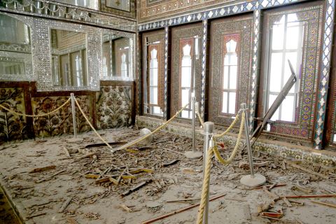 下图:3月3日在伊朗德黑兰拍摄的受损的古莱斯坦宫。古莱斯坦宫又称“玫瑰宫”,是联合国教科文组织世界遗产地之一。新华社 发