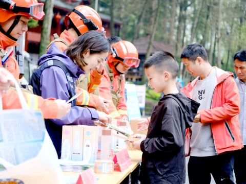 3月29日,成都消防救援机动支队成都大队联合都江堰市应急管理局在都江堰举行清明防火宣传活动,引导市民和游客在森林草原防火区规范行为,防范森林草原火灾发生。图为3月29日游客在青城山景区参加防火答题挑战赛。新华社 发