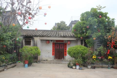如今的李氏家庙,经过修缮加固,基本恢复了原来的面貌,一砖一瓦、一雕一刻,都重现了当年的精美与庄重。家庙的大门前,花木枝繁叶茂,繁花似锦,迎风招展,与古朴的祠堂相映成趣,营造出“古建藏绿韵,繁花映古祠”的优美景致,让这座百年家庙充满了生机与活力。家庙的天井中,各类绿色植物焕发盎然春意,与古城的春天绿意相连,融入揭阳古城“公园在家门前、古城在公园里”的民生愿景之中。