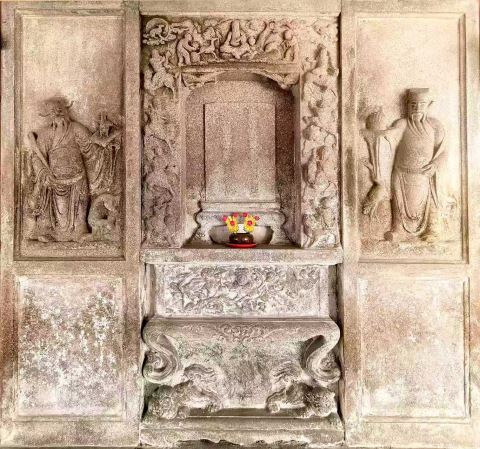 记者采访陈建光(左)。郑楚藩 摄 明清时期,节孝坊是封建礼教的产物,却也在特定历史语境下,成为女性品德的见证。曾母陈氏节孝祠坊的独特之处,在于它将“坊”与“祠”结合,牌坊既是门户也是标志。该祠坐北朝南,面阔13米,进深22米,建筑面积286平方米。首进门楼为一座石作的三门四柱节孝坊,门楼肚、后厅石碑,雕嵌有祥云瑞兽、花卉人物等多层浮雕,线条流畅,层次分明,展现出揭阳石雕艺术的精湛技艺。 穿过牌坊大门,天井两侧的廊间开阔通透。正前方,拜亭与后厅合抱为一(拜亭连接南北厅),主次分明:拜亭进深3.5米,面积42.7平方米,方柱简朴;后厅进深4.8米,面积58.6平方米,八角形主柱支撑起“三载五木瓜”的精巧梁架。 后厅作为祭祀场所,最引人注目的是屏风楣下三块并立的巨型石板,构成独特的“三碑夹”阳碑格式。此前,一些专家学者认为是神龛,经过石雕艺人陈建光现场仔细观察石碑形制,祠堂格局与大门上方的“过灵气孔”,再与几位熟悉古建营造、堪舆的前辈了解核实,认为这不是普通的神龛,而是一种罕见的墓葬形式——“阳葬三碑夹”。这种形式是墓主人生前因其卓越的德行或功绩,在生前或去世后不久便获得官方旌表或社会认可,从而修建的、具有褒扬和纪念性质的墓葬,主要强调其社会表彰意义。正如陈建光所说:“古代女祠极少,从这座祠坊建造的设计巧思,可见曾氏后人对陈氏非常敬重。” “三碑夹”中间主碑高约2.8米,厚约0.44米,上半部为阳碑,竖刻曾公福位、陈氏禄位碑文,下半部雕成了供桌的形状,桌身刻“丹凤朝牡丹”图案,桌脚雕狮底座,俗称“高桌阳碑”。阳碑四周饰以精美石雕,左右为“八仙八骑”,上方为“太上老君”与两童子,左右上角还有朱雀与玉兔。辅碑分立两侧,厚约0.3米,上方为“加冠”“进爵”人物浮雕,寓意着陈氏教子成才、家族兴旺的美好愿景。体现了揭阳地区独特的审美趣味。此外,曾氏族人还收藏有一块供奉祠坊主人神位的神牌和一个完好的清代青花瓷香炉,神牌写“皇清钦赐建祠坊祀旌表节孝曾母陈太孺人禄寿位”字样。 在那个男权主导的时代,陈氏以女性之身,用一生坚守诠释了“节孝”的深层内涵——它不仅是守寡不嫁的贞洁,更是奉亲养子的责任、善待他人的仁爱、传承文脉的担当。这种精神经过祠坊的旌表与祭祀,融入了曾氏家族的血脉,也影响了揭阳古城的民风。 石雕匠心:石语间的艺术密码