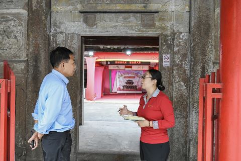 浮雕“郭子仪拜寿”。林佳燕 摄
